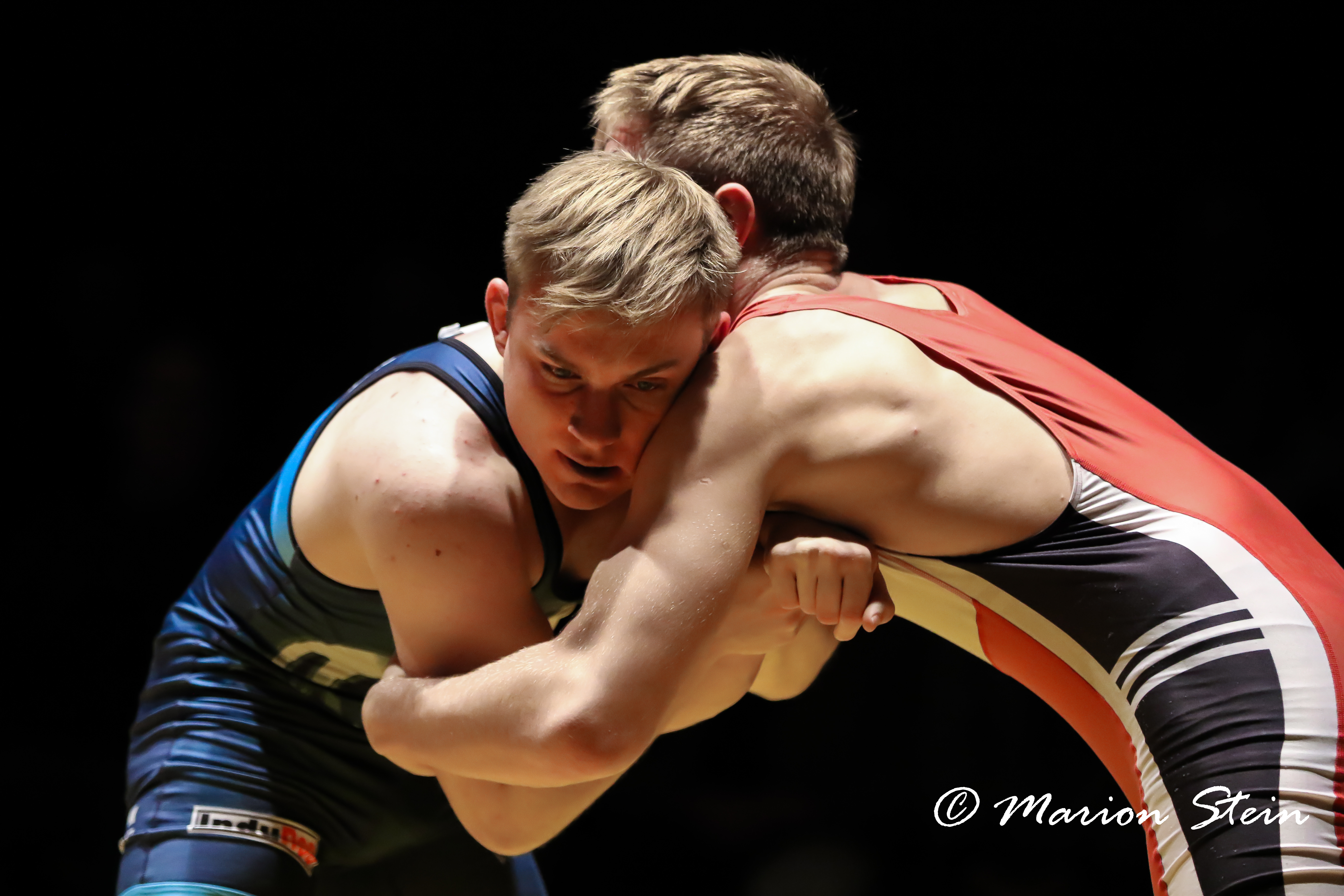 Patrick Eckert (blau) hatte bis 75kg/GR mit körperlichen Nachteilen zu kämpfen. Bild: Marion Stein